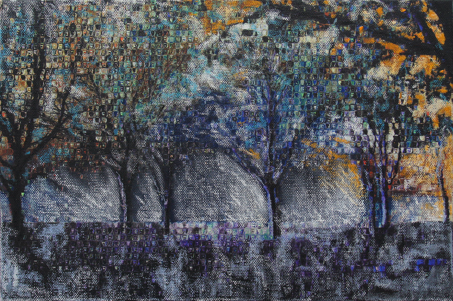 Bomen | printed on canvas, oilpaint + pastels + varnish | 65 x 30 cm