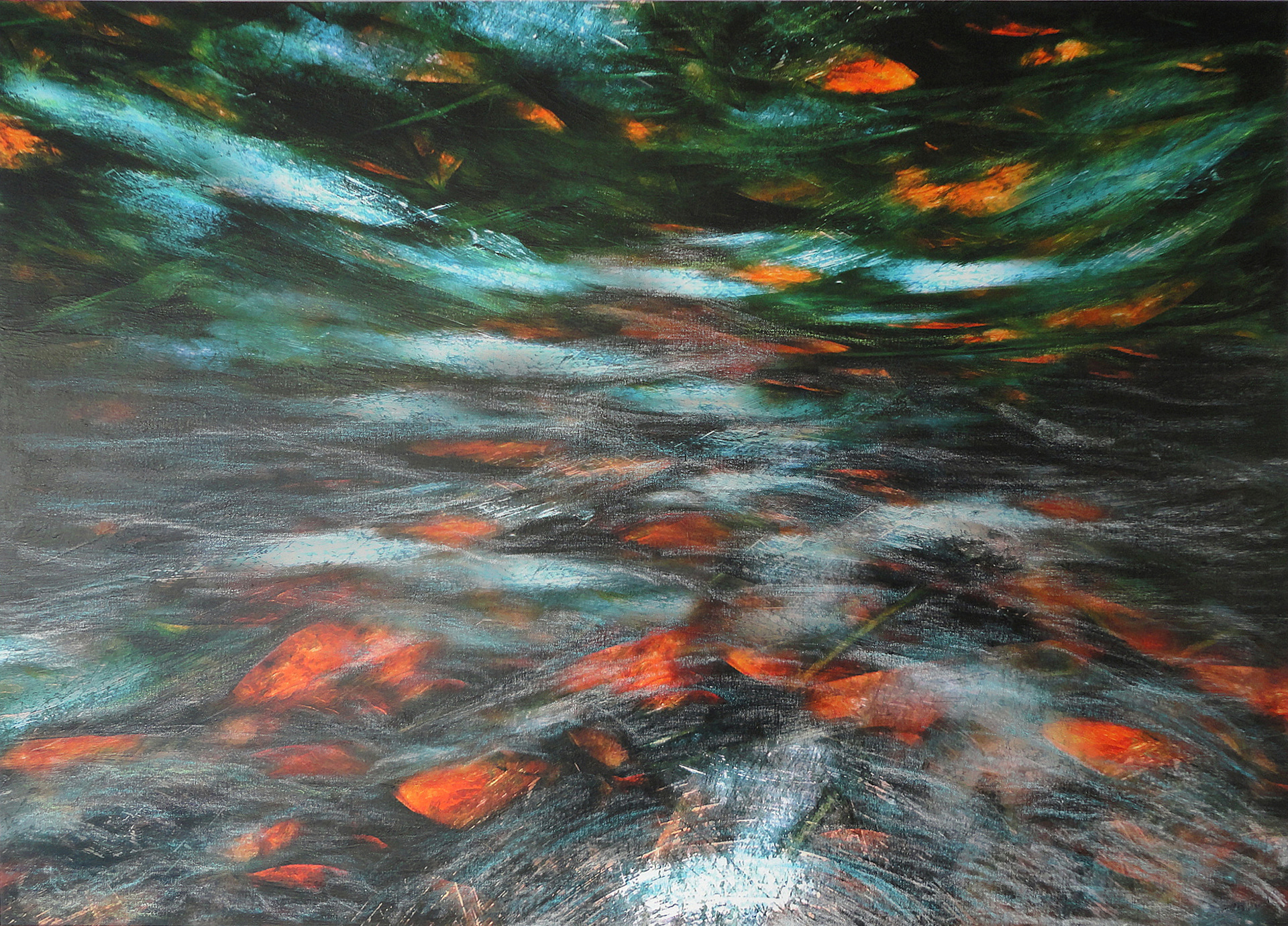Bosbeek (forest creek) | digital painting. printed on canvas, oil pastels | 120 x 90 cm | Sold