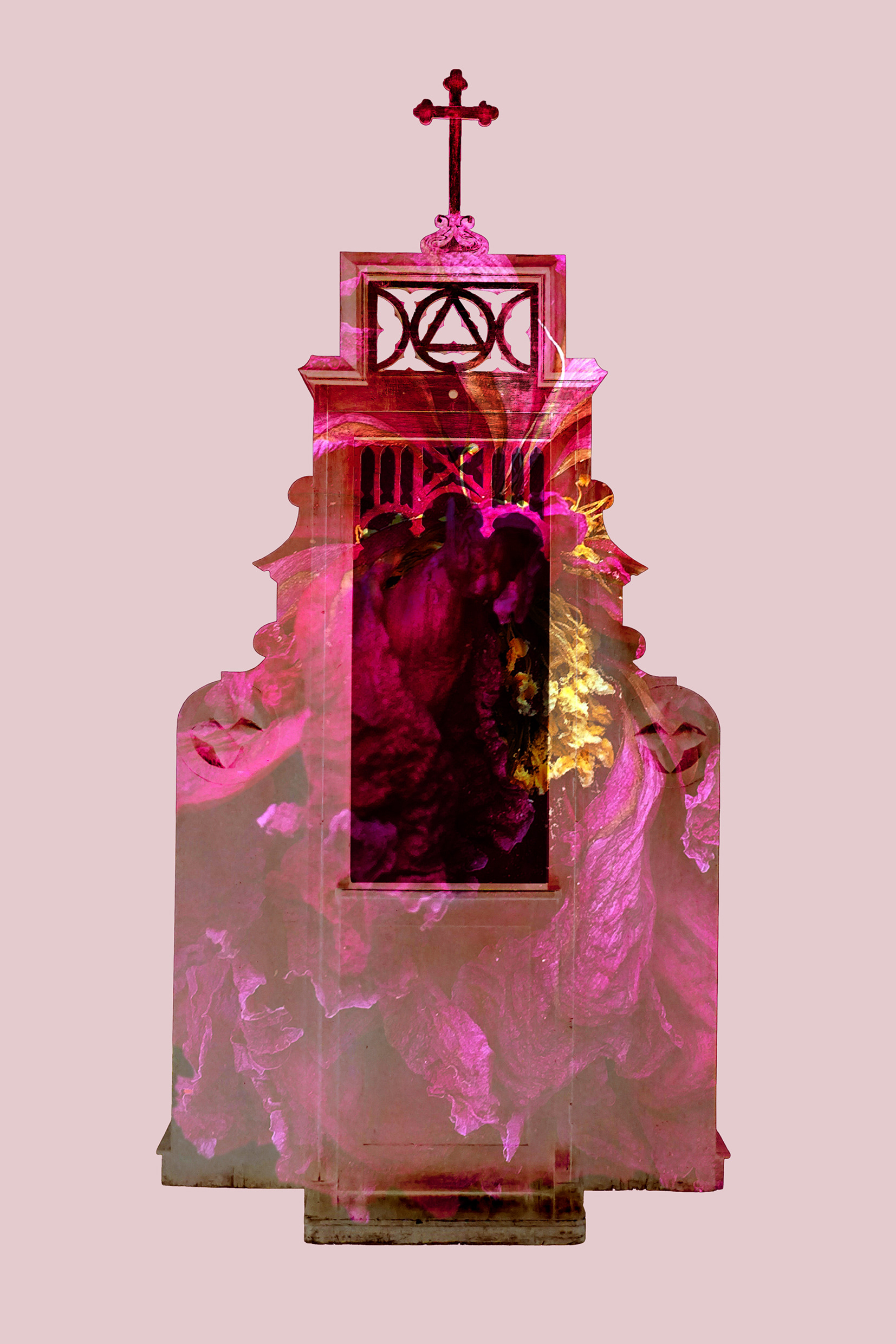 titel: Confessions — the pleasure of sin jaar: 2021 formaat: 45 x 30 cm. techniek: fotomontage Print op Hahnemühle papier of hoogwaardig fotopapier achter acrylglas 6mm., beide verlijmd op dibond oplage: 10