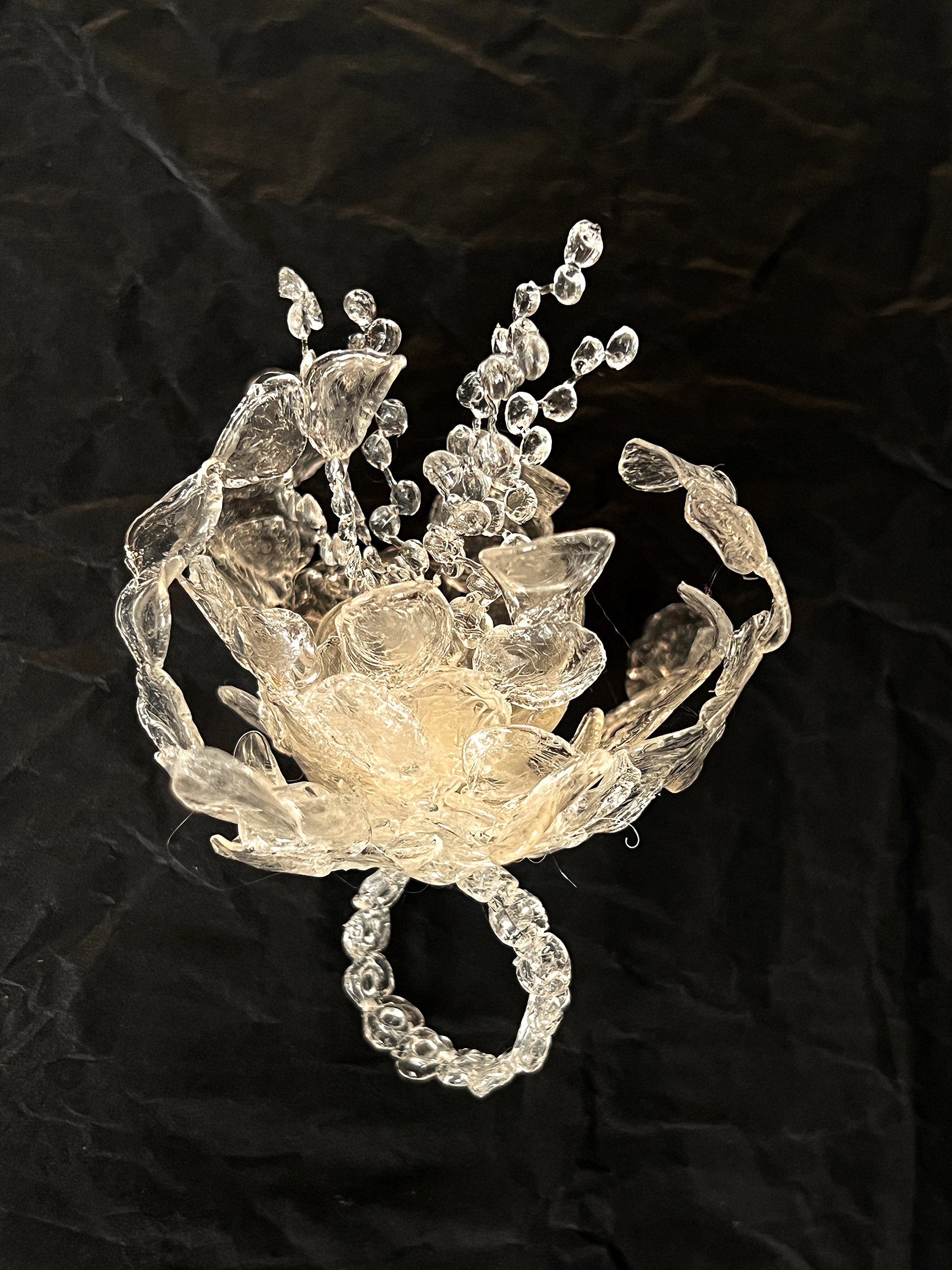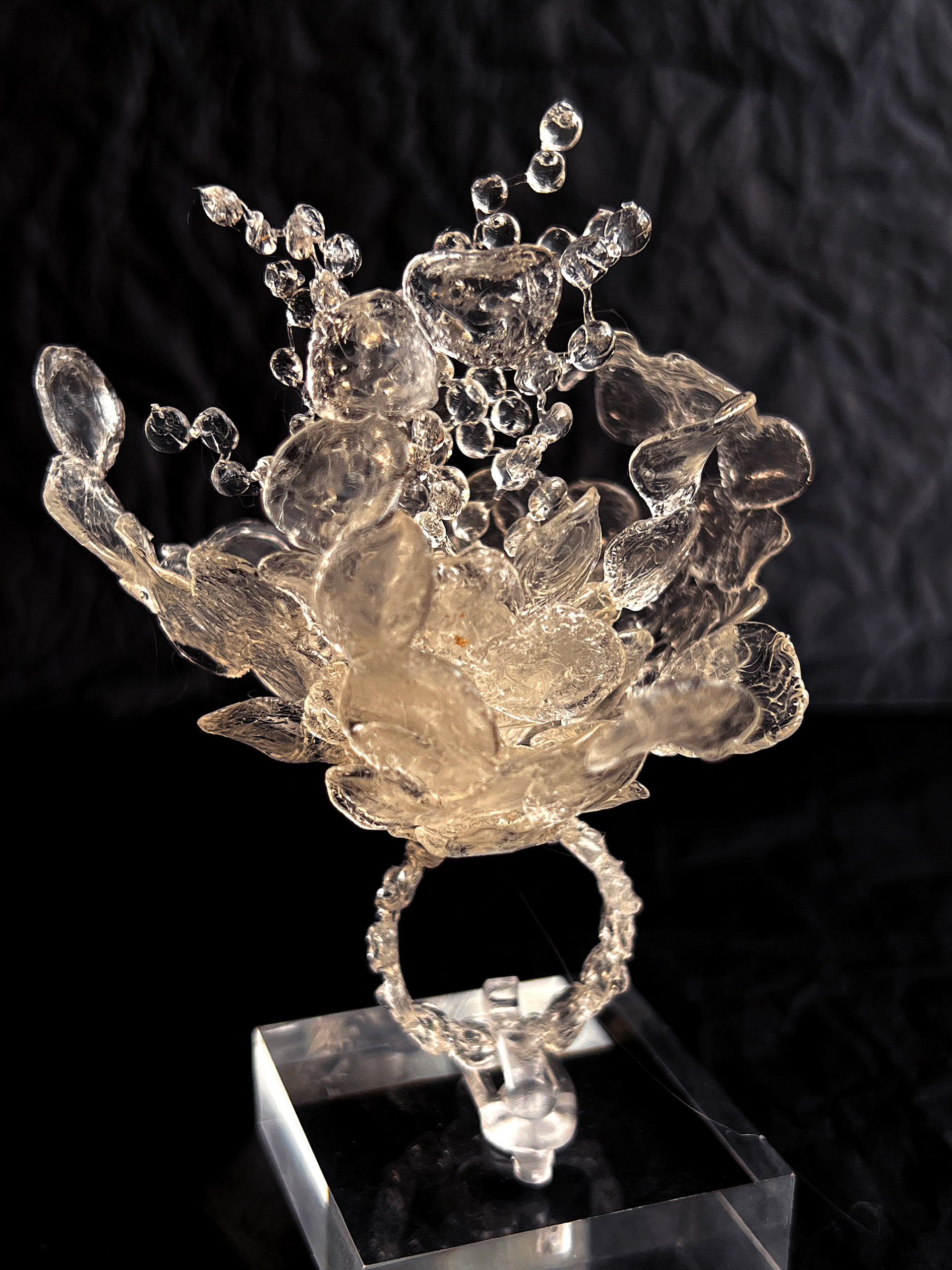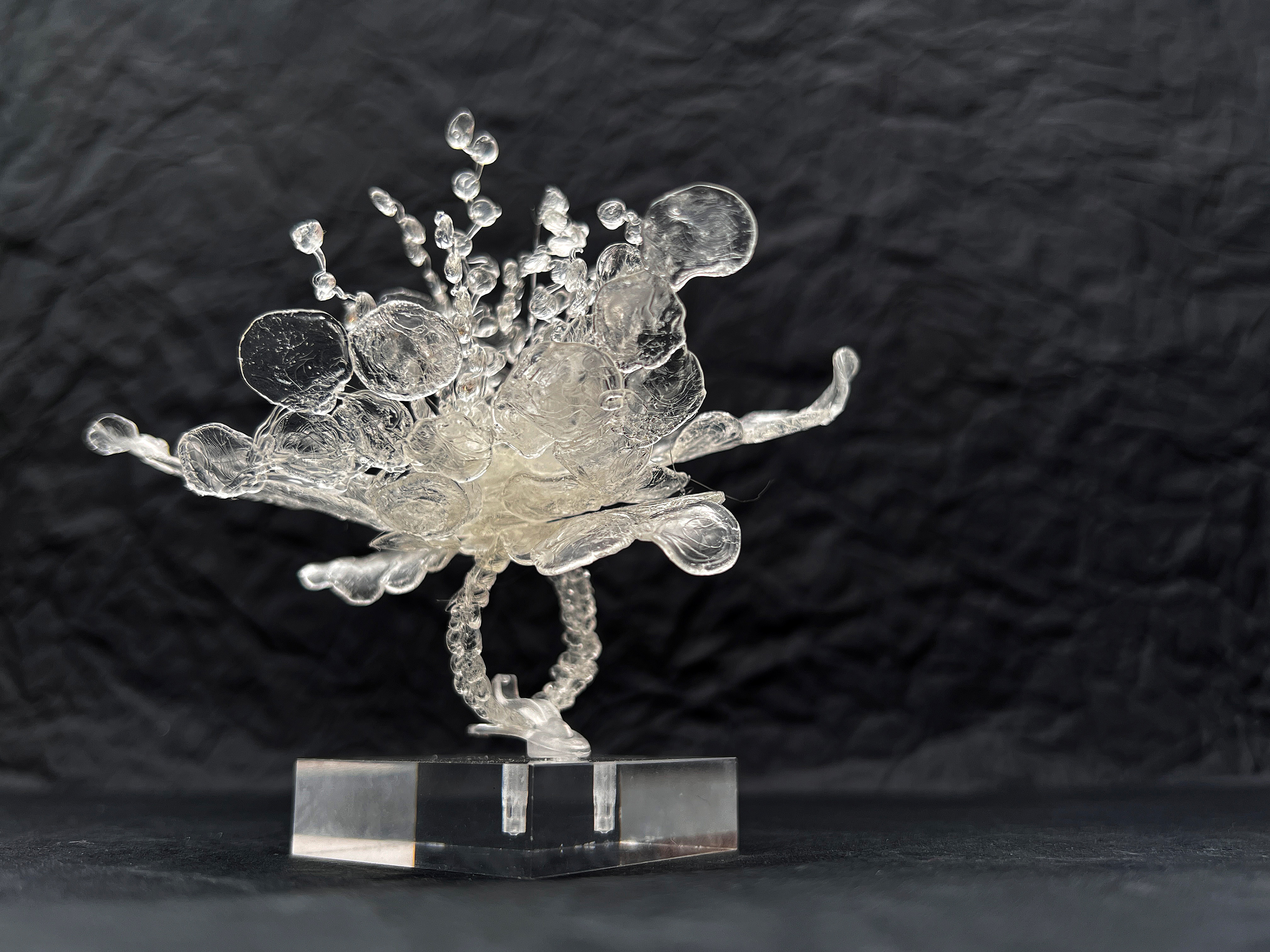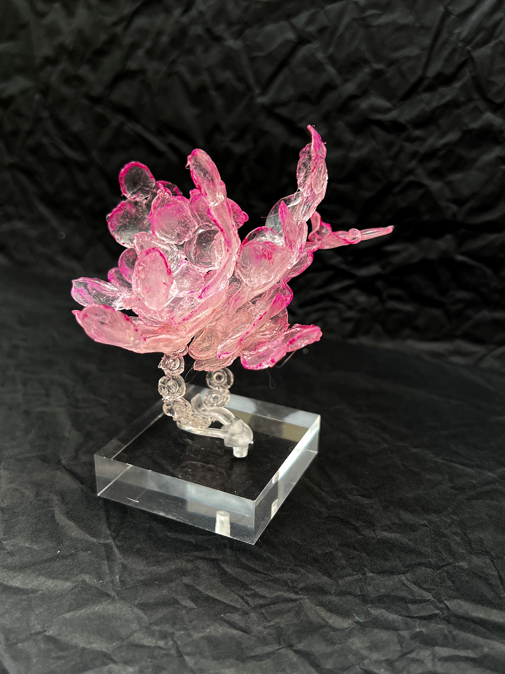 This is a series of rings, inspired by vulnerable coral structures. The rings are very fragile. In fact, They're even so fragile that you cannot wear it for a very long time. It reminds you of the vulnerability of the coral reef, our ecosystem, and the plastic soup in the oceans.