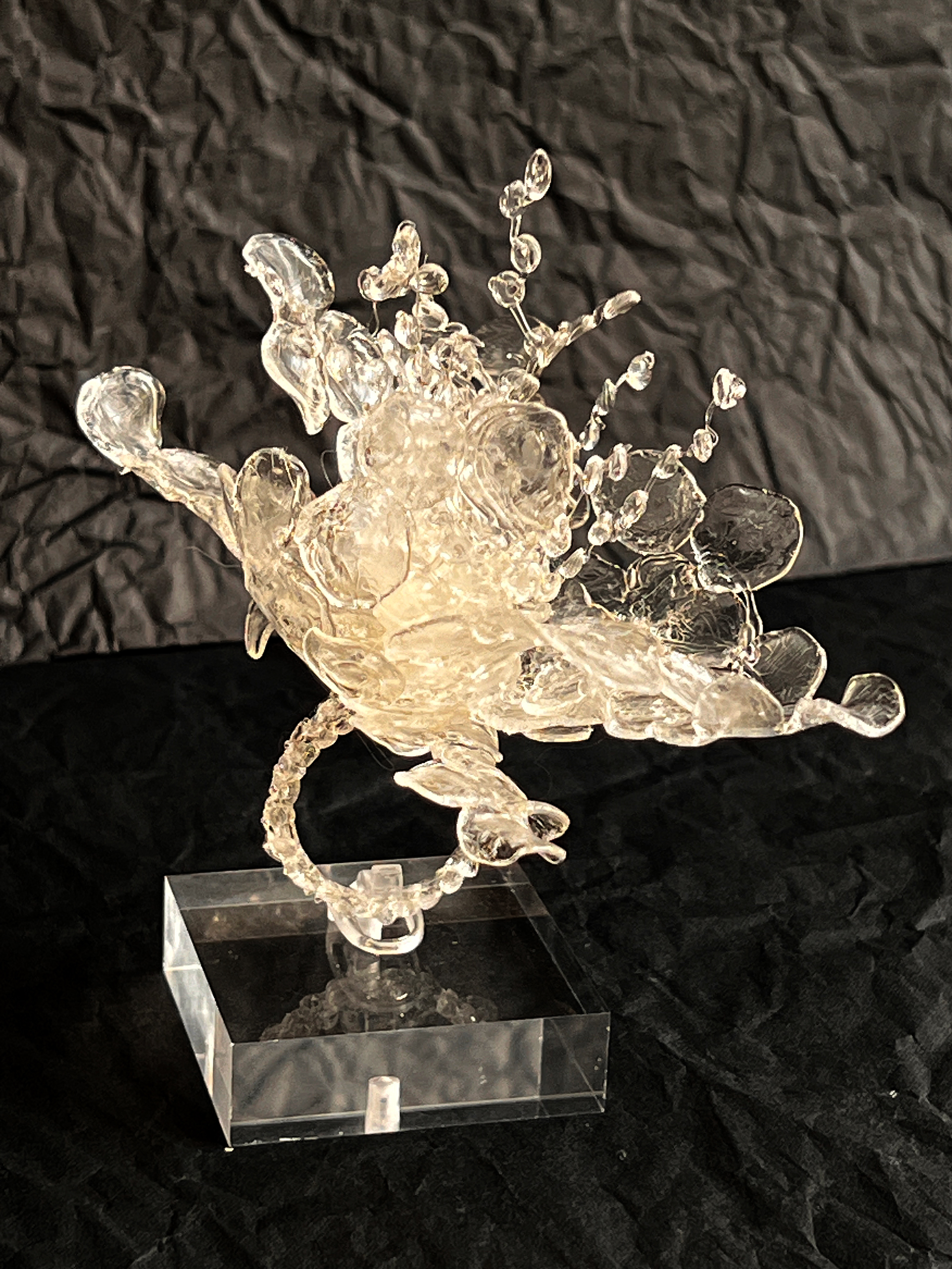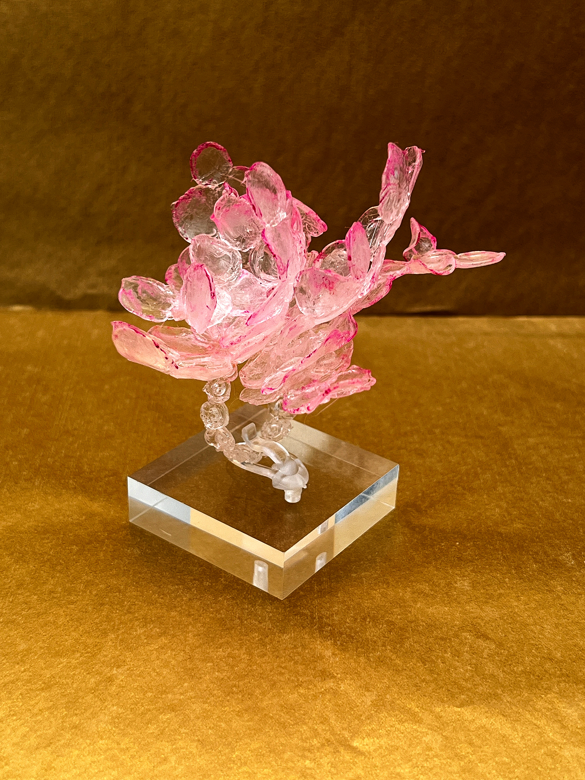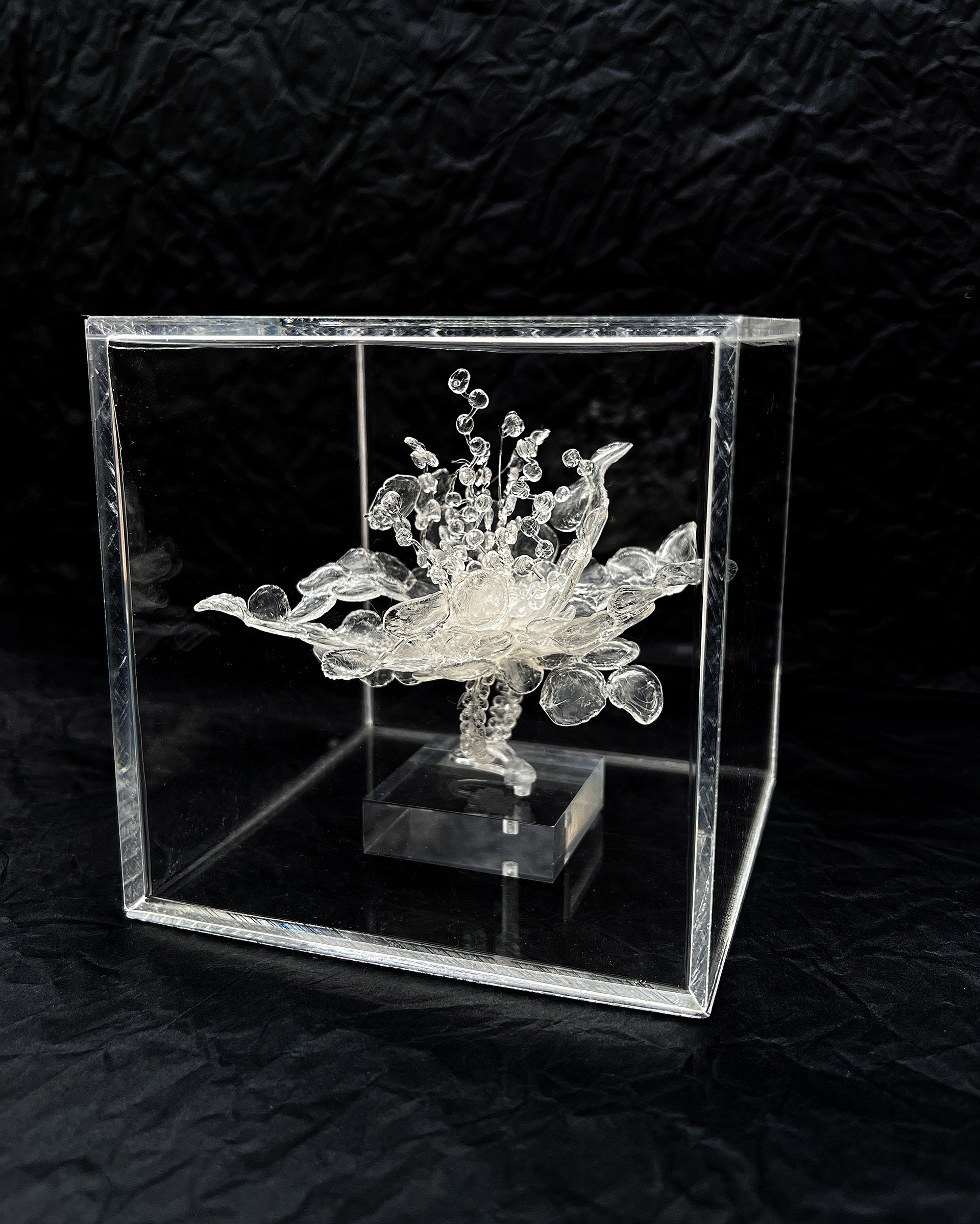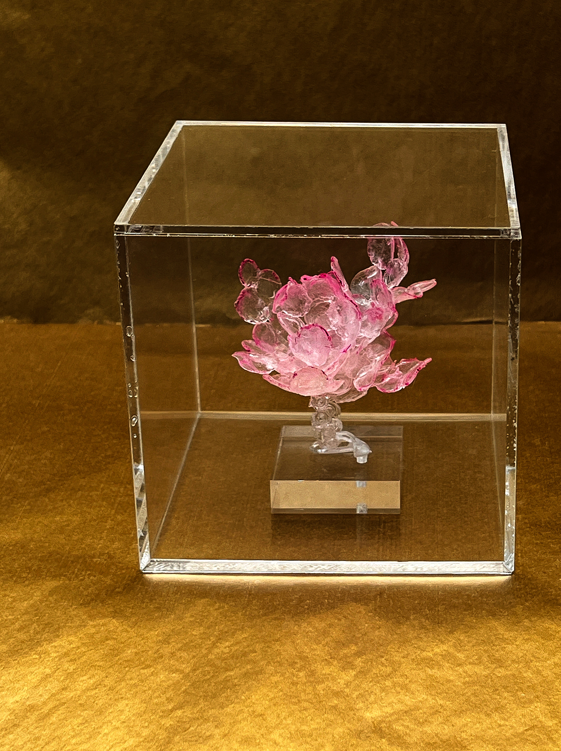 This is a series of rings, inspired by vulnerable coral structures. The rings are very fragile. In fact, They're even so fragile that you cannot wear it for a very long time. It reminds you of the vulnerability of the coral reef, our ecosystem, and the plastic soup in the oceans.