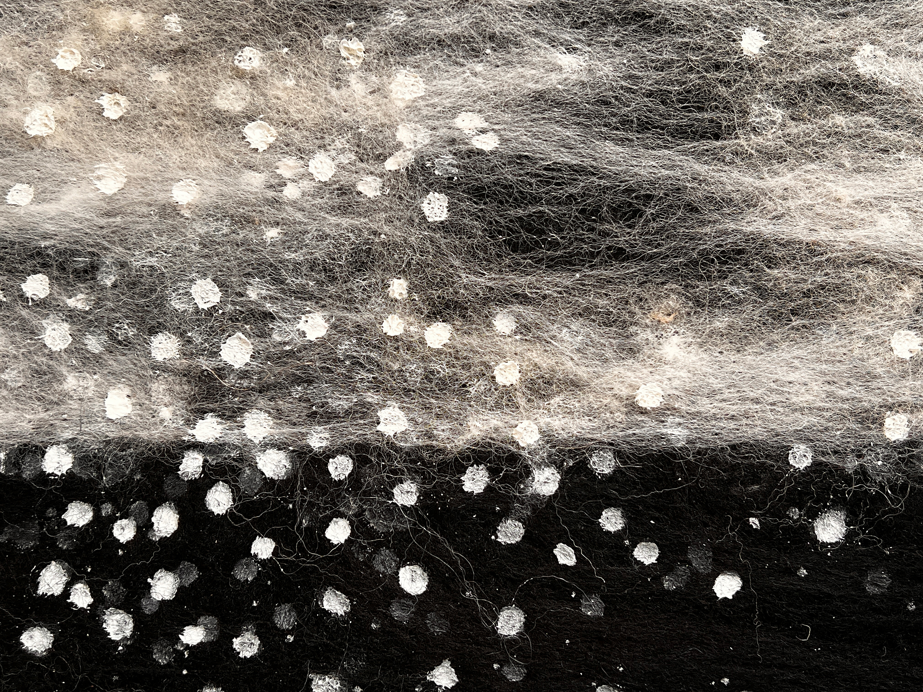 • Noise (+ detail) | 80 x 60 cm | felt, wool, flax, and ink.