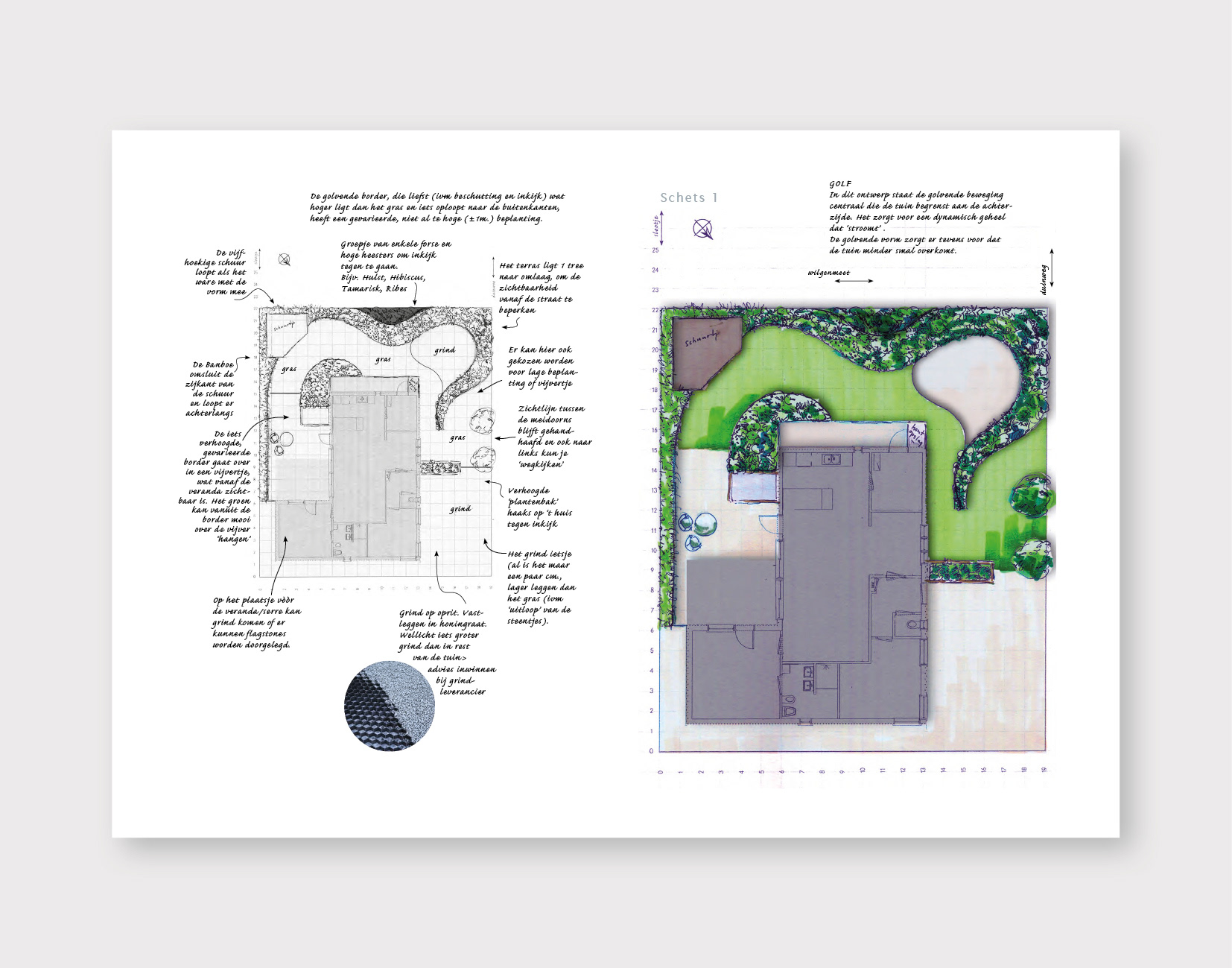 Onder: tuin Nijmegen. Gekozen is voor het middelste ontwerp.