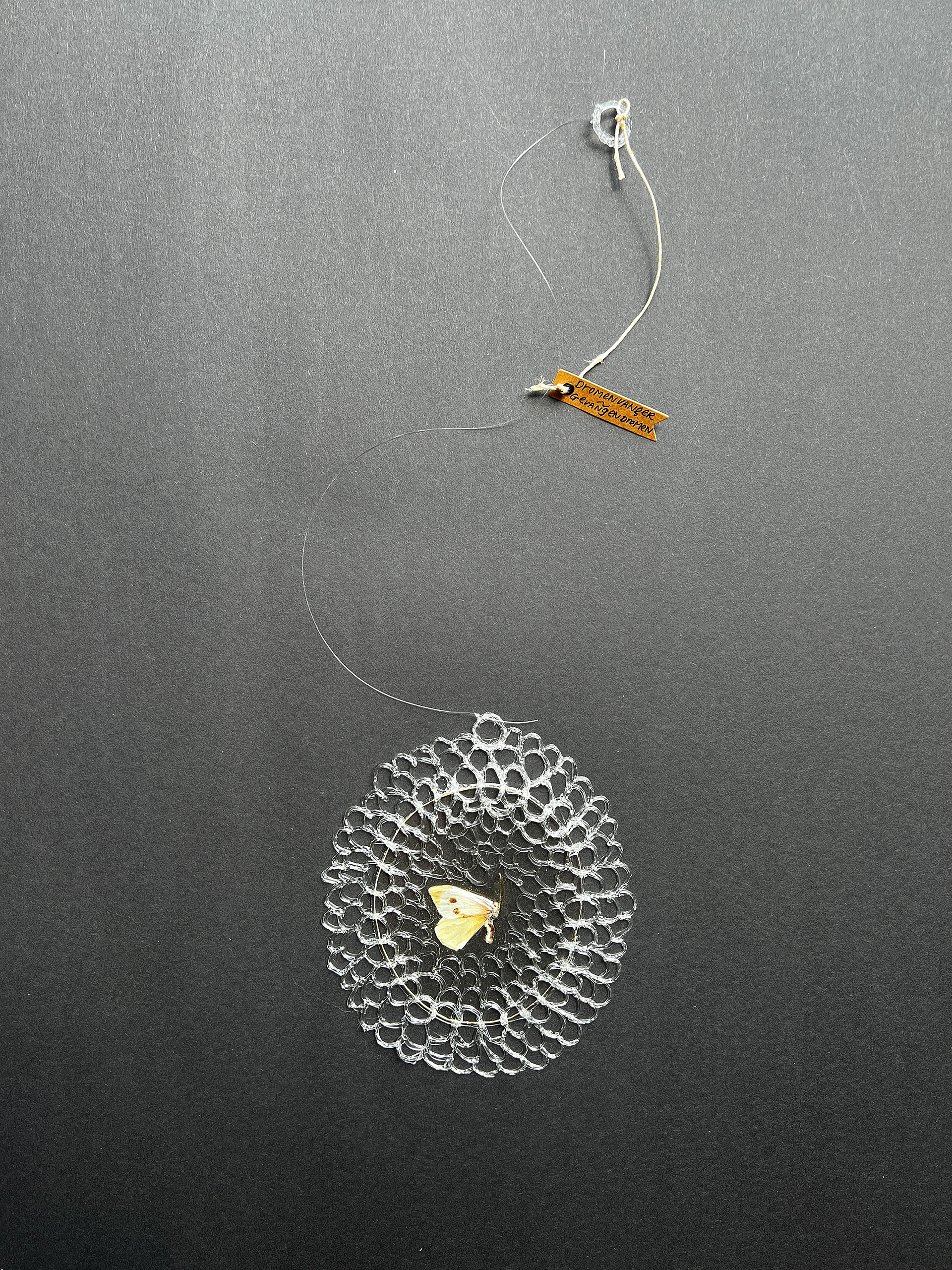 materiaal vlinders, epoxy, draad, PLA (bioplastic), Klamboe